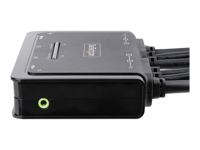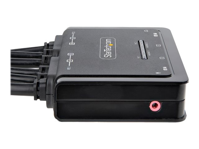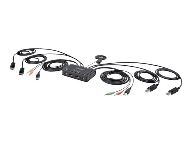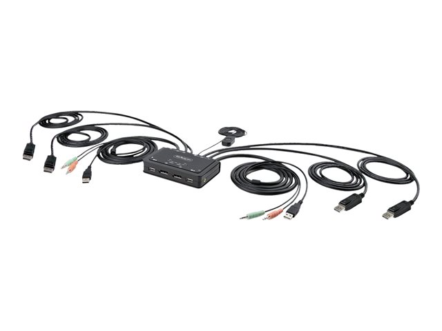 StarTech.com 2-Port Dual-Monitor DisplayPort Cable KVM Switch, 4K 60Hz, Compact KVM with 5ft/1.5m USB-A/DisplayPort/Audio Integrated Cables, Bus Powered