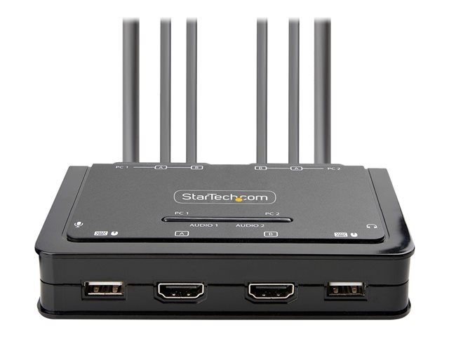 StarTech.com 2-Port Dual-Monitor HDMI Cable KVM Switch, 4K 60Hz, Compact KVM with 5ft/1.5m USB-A/HDMI/Audio Integrated Cables, Bus Powered