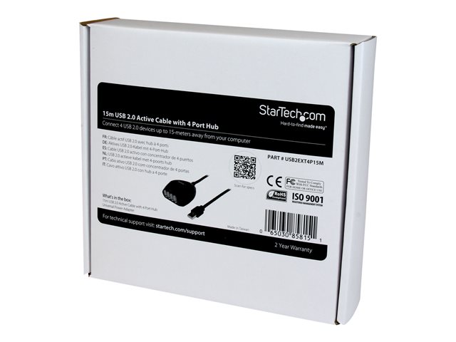 StarTech.com 15 m aktiv USB 2.0-kabel med hubb med 4 portar
