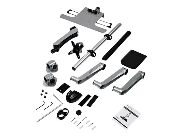 Foldable Standing Desk (WALLSTSI2) - Monteringssats (stång, mushållare, handledsstöd, väggmonteringskonsol, tangentbordsfack, 2 monitorfästen, 2 st. fjäderarmar, 2 st. svängarmar med logotyp, monitoraxel, väggmonteringsfäste med låsplatta, 2 st. svängarmar, musbord, musbricka, fast platta, EVA-musmatta) - för 2 LCD-bildskärmar/tangentbord/mus - plast, aluminium, stål - silver - skärmstorlek: 13"-30" - väggmonterbar - TAA-kompatibel